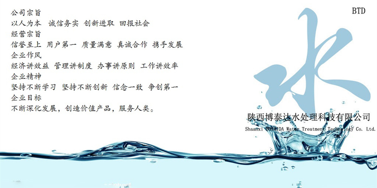 陜西博泰達(dá)水處理科技有限公司是西北一家集銷(xiāo)售、科研開(kāi)發(fā)、安裝和技術(shù)服務(wù)為一體的高新環(huán)保科技型企業(yè)。公司以科技創(chuàng)新為先導(dǎo),全心致力于人類(lèi)環(huán)境保護(hù)和發(fā)展。以客戶滿意、打造完善服務(wù)為遵旨,為廣大用戶提供優(yōu)質(zhì)的水處理設(shè)備和空氣凈化系統(tǒng)。